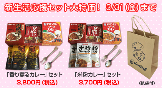 4月から、新しい生活をスタートとさせる方も多いかと思います。 そこで、オリエンタルでは新生活応援セールとして、手軽に調理できるレトルト食品を新生活応援価格にて期間限定で販売いたします。 進学・就職でご自宅を出られるお子様、単身赴任されるご主人様、名古屋の味と一緒に旅立ちたい貴方、この機会に是非、お買い求めください。
